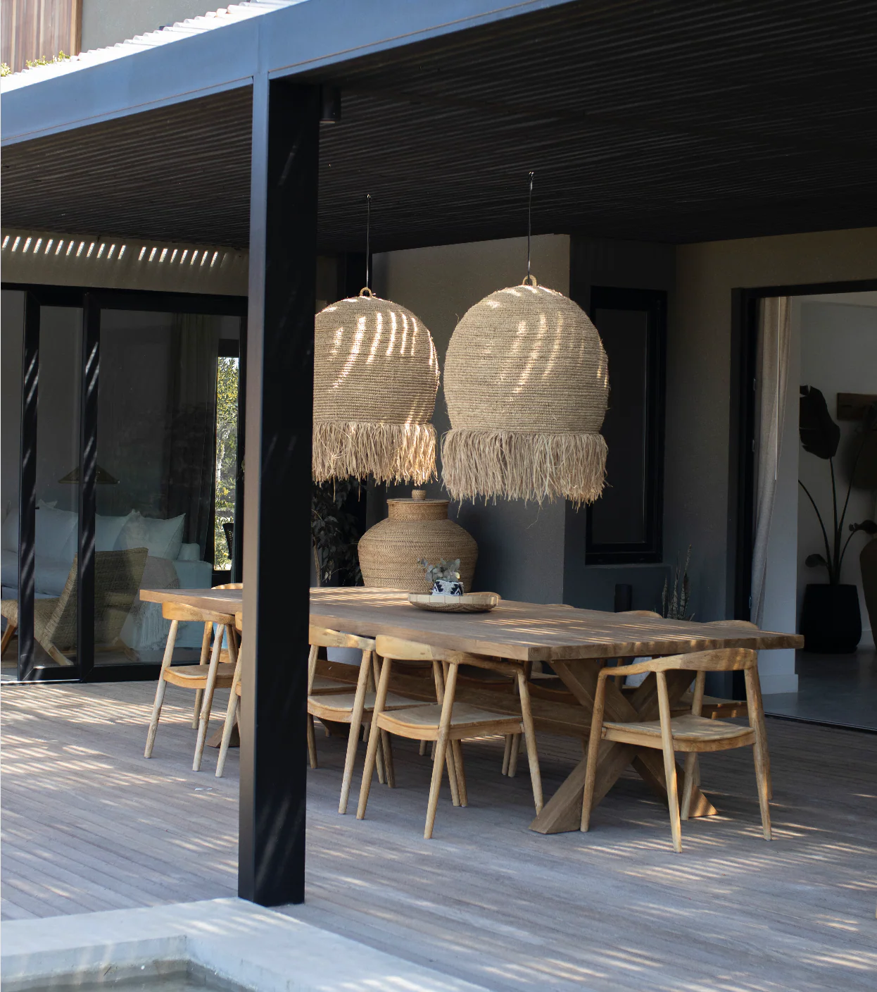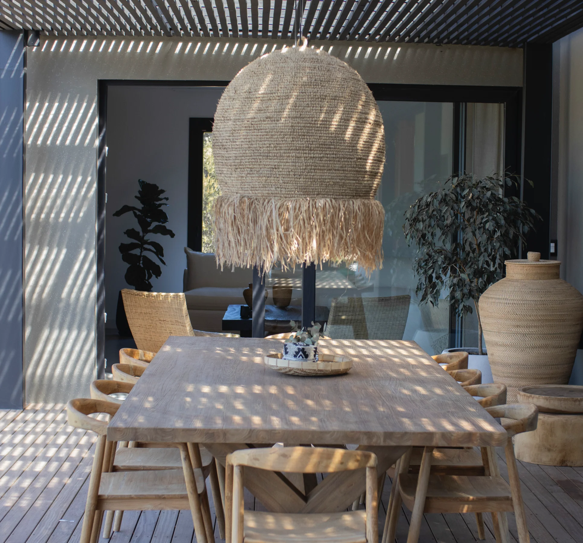 Lámpara colgante de raffia hecha a mano.
