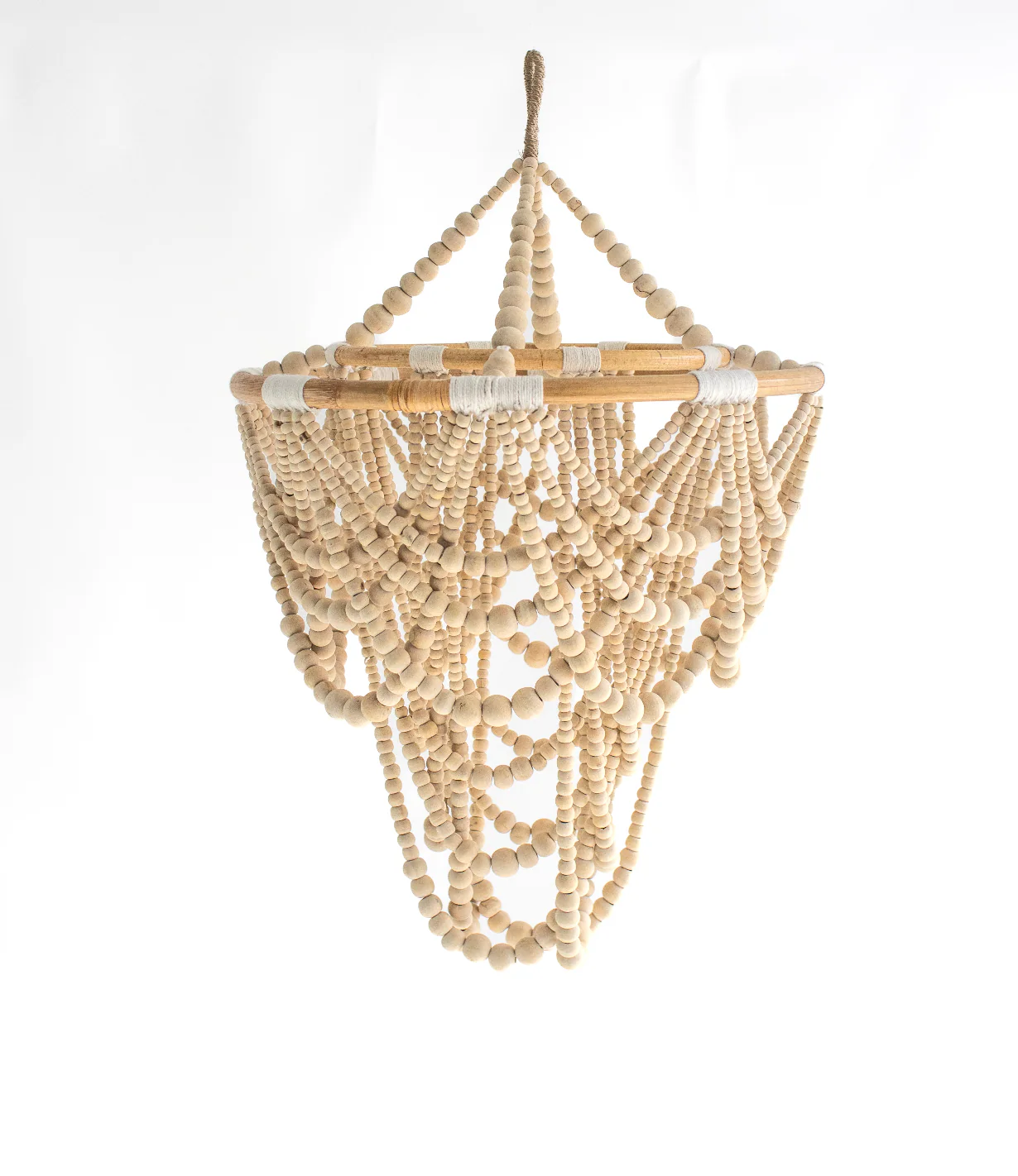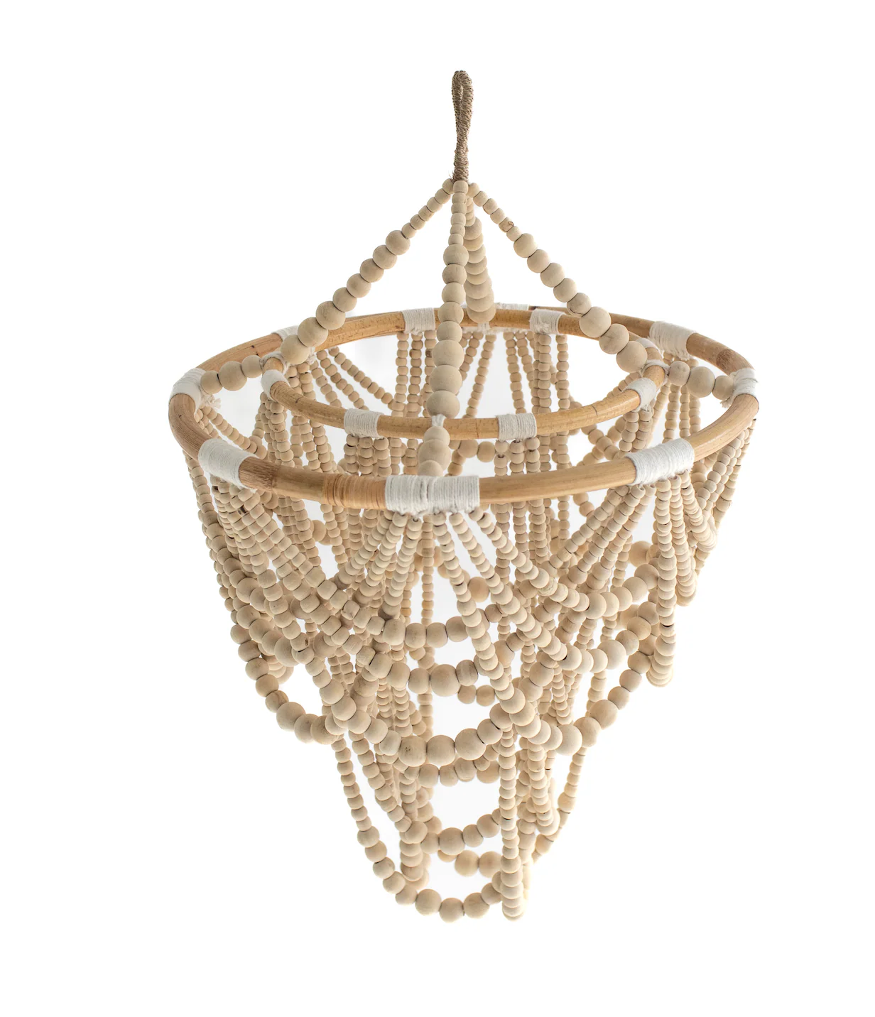 Lámpara colgante de cuentas de madera.